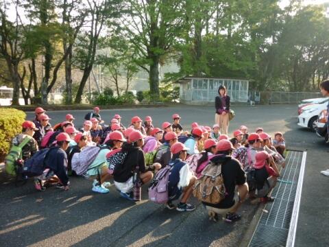 朝の活動の時間に地区児童会がありました。地区ごとに集団登下校などについて、話し合いました。地域の方や横断歩道で止まってくださる車の方へのあいさつの仕方についても、実際に声を出して練習していました。