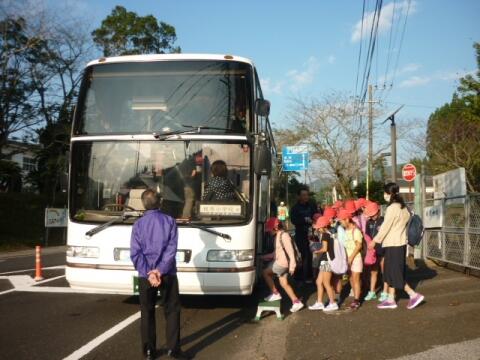 さわやかな朝、子どもたちは、秋の遠足に出発しました。42名の子どもたち全員が参加できました。目的地は、宮崎科学技術館です。みんなワクワクしながら出発しました。