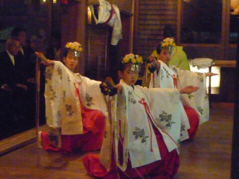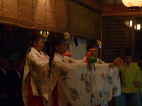 5日の夜、榎原神社で地域の伝統行事の一つである「浦安の舞い」がありました。毎年、希望した高学年の女子が、この伝統の舞いを引き継いでいます。