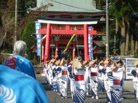 6日の午前中、榎原神社のお祭りがありました。榎原神社から参道を歩き、地区公民館までを往復しました。途中で、踊りや獅子舞などがあり、とても賑わいました。