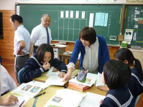 午後から榎原中学校で、小中合同の授業研究会を行いました。中1の国語科「竹取物語」の授業を参観し、授業や小中連携した取組について話し合いました。