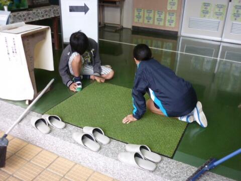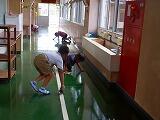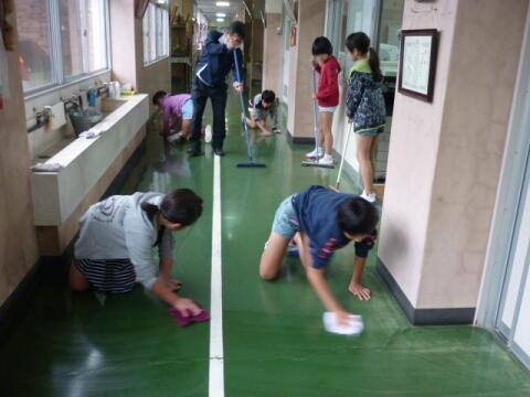 朝の活動の時間に、全校みんなで清掃ボランティアをしました。雨が降っていたので、廊下や教室などをきれいにしました。