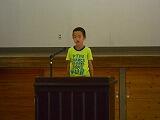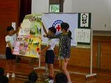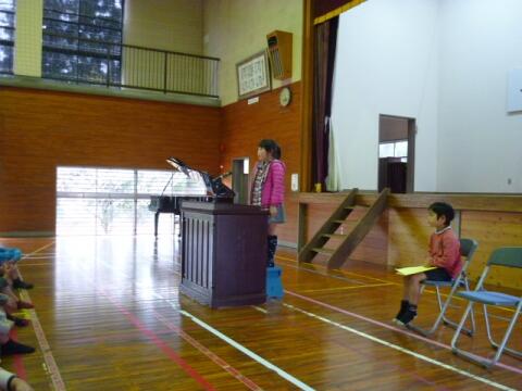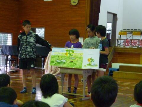 図書委員会の子どもたちが、はじめに各学年で一番本を読んでいる人の紹介をした後、大きな絵本を使って、読み聞かせをしてくれました。大きな絵本にびっくりでした。読み聞かせも上手でした。