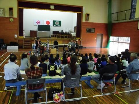 パーカッションと津軽三味線を演奏する「温故知新」というグループをお招きし、スクールコンサートを行いました。子どもたちは、演奏を聴くだけではなく、一緒に楽器を演奏することもでき、楽しそうでした。保護者や地域の方にも来ていただきました。