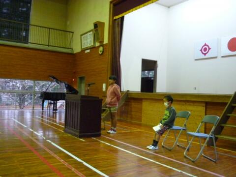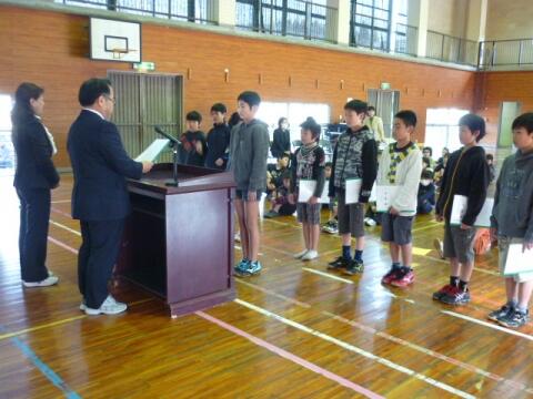 2学期の終業式がありました。はじめに1年生と3年生が、2学期を振り返って、作文を発表しました。気持ちを込めて、発表していましたよ。次に校長先生が、2学期の無欠席児童の紹介や干支のこと、冬休みの目標などのお話をされました。式の後、担当の先生から冬休みの過ごし方のお話があり、最後に各作品展などに入賞した児童の表彰をしました。たくさんの児童が、図画やスポーツで入賞していましたよ。1月6日は、全員笑顔で会いたいですね。