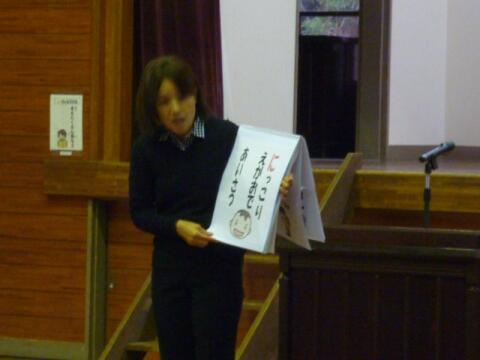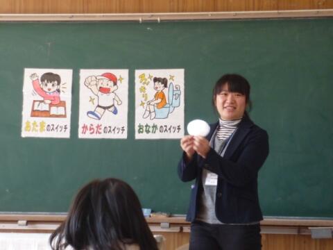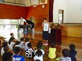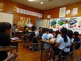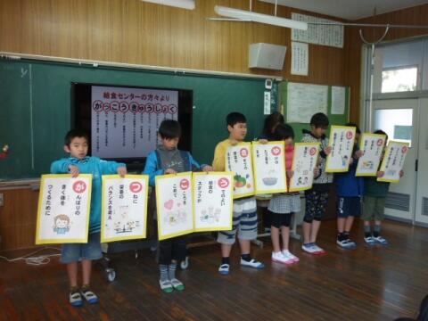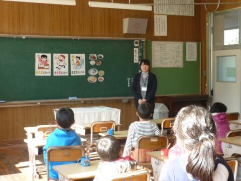 学校栄養職員をお招きし、1・2年生と給食を一緒に食べた後、ミニ栄養指導をしていただきました。挿絵などを使って、とても分かりやすくお話していただきました。「給食の大切さが分かった。」など、子どもたちから素晴らしい感想も出ていました。