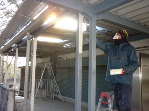 先週から環境整備員さん方に、渡り廊下のペンキ塗りをしていただいています。少しずつきれいになってきました。給食室前は、終了したようです。今日からパソコン室への渡り廊下の作業も始まりました。