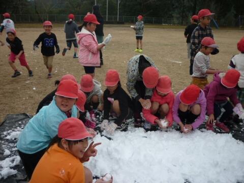 今年も山形県の高橋様から雪が届きました。箱の中から雪が見えた瞬間、「わー」「雪だ―」など、子どもたちから歓声があがりました。・・・雪でウサギを作ったり、雪合戦をしたり、笑顔いっぱいの子どもたちでした。ありがとうございました。