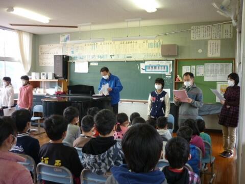 本日(30日)は、朝の活動で榎原中学生による「南郷町の昔話」がありました。子ども達は、地域の話に聞き入っていました。中学生の皆さん、ありがとうございました。
