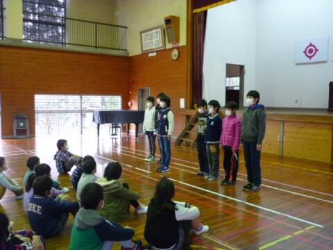 始業式では、2年生と6年生が、3学期の目標を発表しました。校長先生からは、3学期も「聞く・言葉づかい・しせい」をしっかりして、仲よく過ごしましょうと、お話がありました。その後、係の先生から学校生活で気を付けることやインフルエンザの予防などについて、説明がありました。