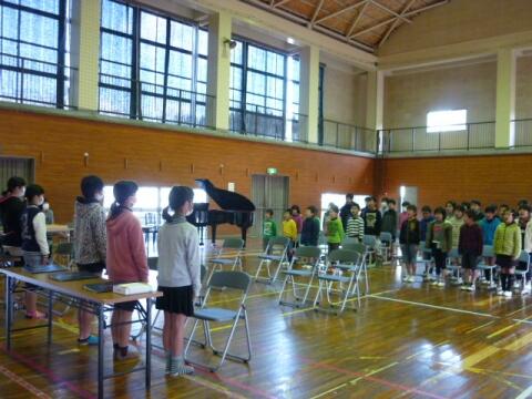 その後、全校合唱曲「ふるさと」のパート別練習をしました。高学年が、下学年をうまくリードしながら練習を進めていました。