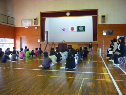11月の生活目標は、「本をたくさん読もう」です。委員会からのお知らせの後、1年担任で図書担当の先生が、読み聞かせをしてくださいました。『いのちのあさがお』という題の本で、子どもたちは、命の尊さを感じながら聞いていたのかもしれません。