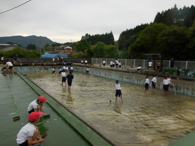 今日から明日にかけて、「校内水泳教室」と明日開催される5・6年生「日南市水泳記録会」の練習をしました。子どもたちは、一人一人の目標をしっかりもち、泳いでいました。短時間でコツをつかみ自己記録更新をしていたようです。明日もしっかり頑張りましょう。5・6年生は、「日南市水泳記録会」での自己記録更新と満足のいく泳ぎを期待します。