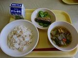 今日の献立は、「麦ごはん」「けんちん汁」「いわしのおかか煮」「きゅうり」「牛乳」です。今日は、子ども達は、玉のような汗を朝から流しながら午前中の学習に頑張りました。給食当番も替わり、みんなで協力をしながら配膳をしていました。今日も給食をおいしくいただきました。