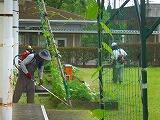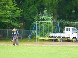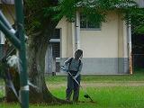 昨日と今日は、環境整備員の方々が来校されて、運動場や土手等の草刈り等をしていただきました。雨上がりの運動場ですので、刈った草が体中につきやすくて大変な中、また、この暑さの中作業をしていただいて感謝の気持ちでいっぱいです。