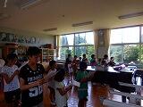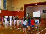5・6年生のお兄さんやお姉さんが1年生に補助について体力テスト「シャトルラン」を行いました。「頑張れ。」の声援や走り終わった後の補助のおかげで,1年生も安心して「シャトルラン」を終えることができました。