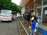 今日は、楽しみにしていた移動図書館「たいよう号」の来校日です。あいにくの雨でしたが、受付場所を玄関に移し、貸し出し開始です。あっという間にたくさんの本を手に並んだ子ども達でした。