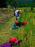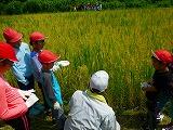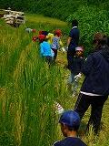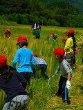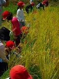 日差しが強く晴天の日でしたが、JAの方々や学校支援の方等のご協力やご支援の下、各グループごとに分かれ、稲刈りをしました。途中、何回も水分補給をしながら一つ一つの稲穂を手際よく刈っていきました。4月の「田植え」と今回の「稲刈り」だけの体験でしたが、お米一粒一粒の大切さを感じ、かかわってくださった方々に感謝することができたと感じます。
