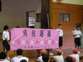 この日は、本年度の榎原小中合同運動会結団式も行われました。平成29年度のスローガン発表、団長の決意表明、団決定、各団応援練習等がありました。子どもたちは、運動会への気持ちを大いに高めていました。