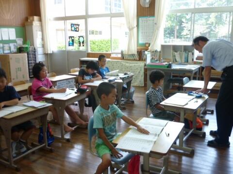 この1学期、1年生は70日間、2~6年生は73日間、毎日、元気に登校してきました。欠席ゼロの子どもが、42人中28人いました。すばらしいことです。みんなで拍手をして褒めました。終業式では、はじめに3人の子どもが、1学期を振り返ってのことや2学期にがんばることを発表しました。その後、校長先生から『根気:宿題や手伝いを最後まで』『勇気:命を大切に』『元気:早寝早起き朝ごはん』と『人のいやがることは絶対にしない』のお話がありました。式の後で、生活指導の先生や保健室の先生から、夏休みの過ごし方についてのお話がありました。・・・長い夏休みにいろいろなことを体験してほしいですね!