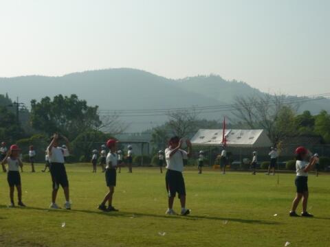 朝の時間に、全校で運動会で踊る「日向よいやな」を練習しました。1年生は、初めてでしたが、先生や上級生のお兄さんやお姉さんのまねをして、上手に踊っていましたよ。