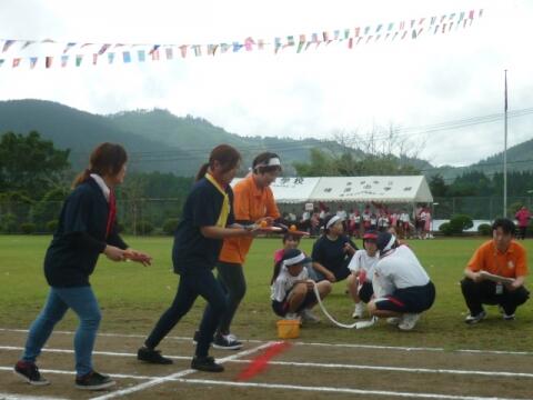 PTAや来賓等の競技を紹介します。運動会の立派な入場門は、地域の方から竹をいただき、それを保護者の協力で完成させました。また、保護者の皆様方には、競技中の用具の準備やPTA競技への参加など、終日お世話になりました。ありがとうございました。