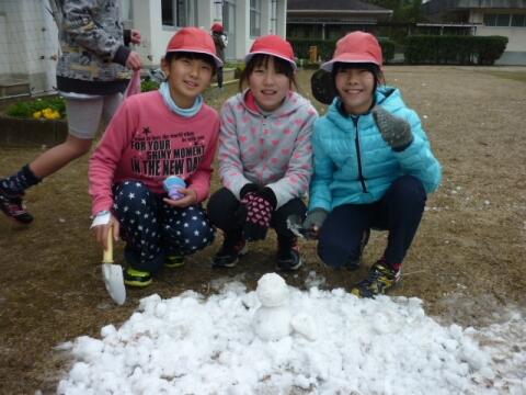 昨日は、日本全国とても寒い1日で、九州各地でも雪が降りました。榎原にも降りました。「きのう雪であそんだよ。」と教えてくれる子どももいました。そして、今日は学校に雪が届きました。潟上地区にお住まいの野川様のご厚意で、ご友人の山形県の髙橋様から届きました。子どもたちにとっては、ダブル・スノーで大喜びでした。雪合戦をしたり、小さな雪だるまをつくったりしていました。