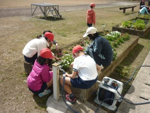 掃除の時間にみんなで花壇の草取りをしました。花壇がきれいになって、花も生き生きとしてきました。子どもたちの心も優しく育ちました。