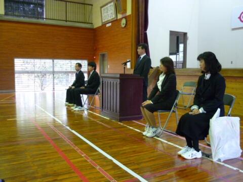 榎原中学校で、「立志のつどい」がありました。2年生7名が、今までを振り返り、これからの自分の生きかたについて目標を発表しました。その後、日南市油津商店街サポートマネージャーの木藤さんの記念講演があり、その思いが中学生にも伝わっていたようです。