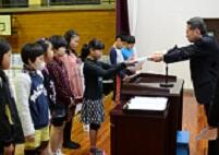 終了式 投稿日時 : 2014/03/26 学校管理者 一年間の学習を終え、一人一人無事に修了書を受け取りました。 また各学年の代表児童が、1年間を振り返って頑張ったことと、 新学年に向けての抱負を発表しました。 榎原小のみなさん一年間頑張りました。 新年度からもさらに成長していきましょう。 修了書を受け取る様子 作文を発表する児童 Tweet