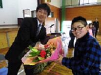 最後に全校児童で、花道を作り、別れを惜しみながら送り出しました。