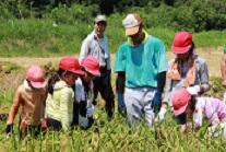 JA青年部の方に稲の刈り方を教えて頂き、みんなで一生懸命刈りました。