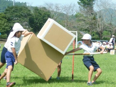 全校体育 投稿日時 : 2016/09/08 学校管理者 小学校だけで運動会練習をしました。はじめにダンスを練習し、その後、団技をしました。2本の棒の上に、学年に応じた数の段ボール箱を積み重ねて、ポールを回ってくる競技です。途中で崩れたりして、難しそうでしたよ。 Tweet