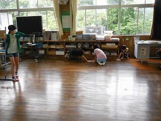 榎原小学校では、縦割り清掃活動に取り組んでい