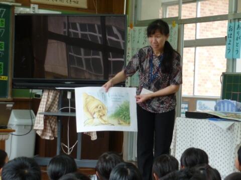 4月からALTとして、子どもたちの外国語活動や国際理解教育のために、月1回来校していただいたアンジェリーナ先生が、本日が最後の授業となりました。午前中は、いつも通り、各学年での活動がありました。そして、昼休みには、特別に読み聞かせをしていただきました。手作りの紙芝居やデジタル教材を使っての読み聞かせで、子どもたちも熱心に聞いていました。最後は、みんなでお見送りしました。