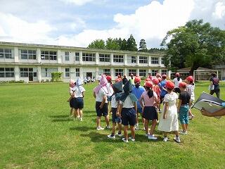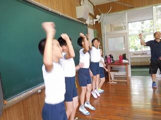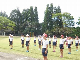 今朝は、秋らしい涼しい風が吹き、たくさんのとんぼが飛ぶ運動場で、全校体育をしました。リレーの走順確認と全校団技の練習をしました。初めての練習で、なかなか息が合わないところもありましたが、お互い赤白関係なく応援をして練習に励んでいた子どもたちです。