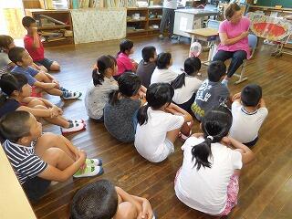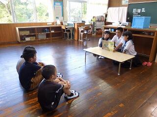 今日は、榎原中学生1・2年生による読み聞かせがありました。学年毎に紙芝居で昔話等を聞きました。お話の後は、クイズもあり楽しい時間を過ごすことができました。榎原中学校の皆さん、ありがとうございました。