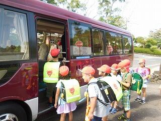 今日は、第2回 南郷小学校との交流学習の日です。1~3年生が、市のバスで南郷小学校に出発です。みんな元気よく出発していきました。