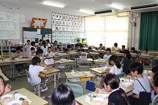 昨日の南郷小との交流学習の日は、「お弁当の日」でした。田んぼで育てたお米で作った「おにぎり」が入ったお弁当でした。南郷小学校のお友達にも紹介しました。みんな楽しい給食の時間になりましたね。