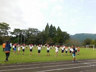 全校体育「リレー、全校団技の練習