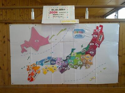 図書室を出たところにある日本地図は、昨日、全て制覇しました。貸出冊数が300冊で都道府県1つに色を付けてくださっていたものです。