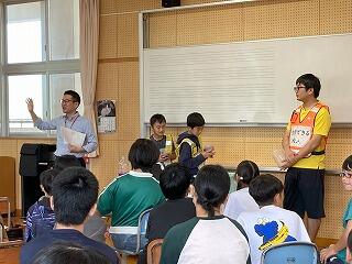 競技の中で様々な工夫があることや、サインエールという応援のしかたについて話しました。