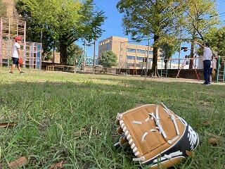 今日は、ソフトボール投げの練習で、昨年度大谷選手からいただいたグローブを使いました。