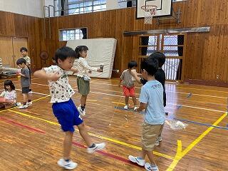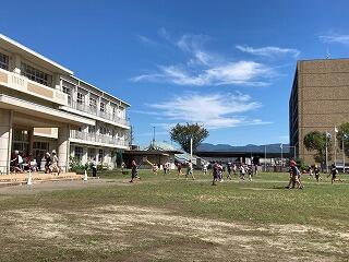 おにごっこは多学年が混じって、先生も一緒に駆け回っています。