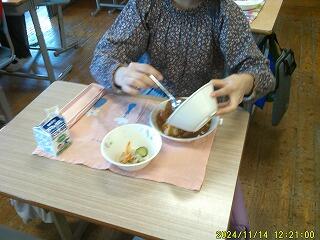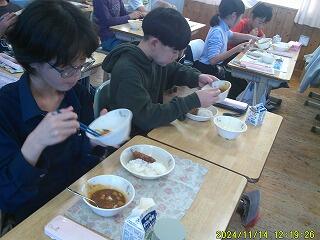 そして、その火を生かして飯盒炊飯(カレー作り)をしました。慣れない作業に苦労しましたが、みんなで協力した分、とてもおいしいカレーでした。