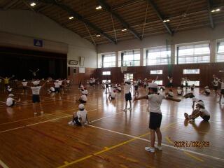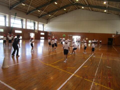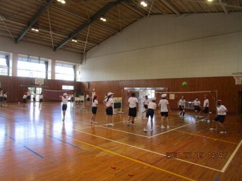 こちらになると、バレー部もいることだし、ネットを立てて、本格的に、楽しいソフトバレー。