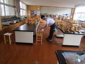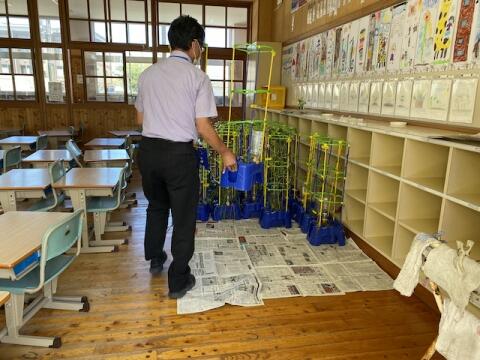 そこで、校長の提案により、5台の巨大扇風機を購入していただきました。