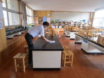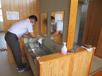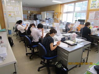 手指消毒用のアルコール、児童用マスクの買い置き、職員室の机のシールド、手洗い石けん、校長室・保健室用のサーモ温度計測器等、様々な物品を購入させていただいています。