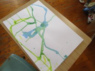 画用紙に垂らした絵の具が作り出す、幻想的な抽象画。