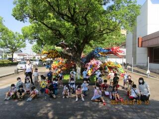 君は、飾り付け用の折り紙作り。ていねいに小さく作ったね。